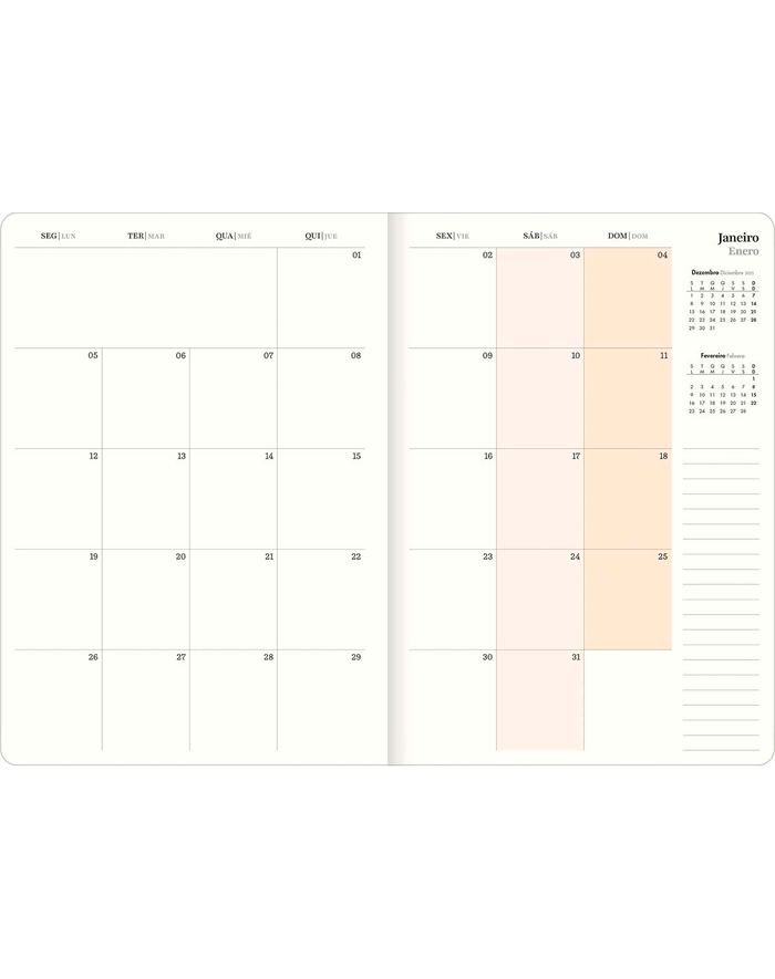 Se você procura um planner que una estilo e praticidade, inspirado nas principais tendências de moda, a Agenda 2026 West Village Planner capa flexível da Tilibra é a escolha ideal. Com formato de 17,8 x 25,4 cm, ele possui capa flexível com acabamento metalizado e em relevo, além de páginas com visões anual e mensal para facilitar a organização do seu dia a dia.