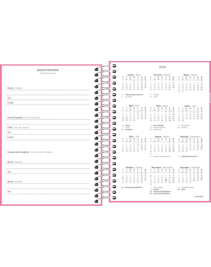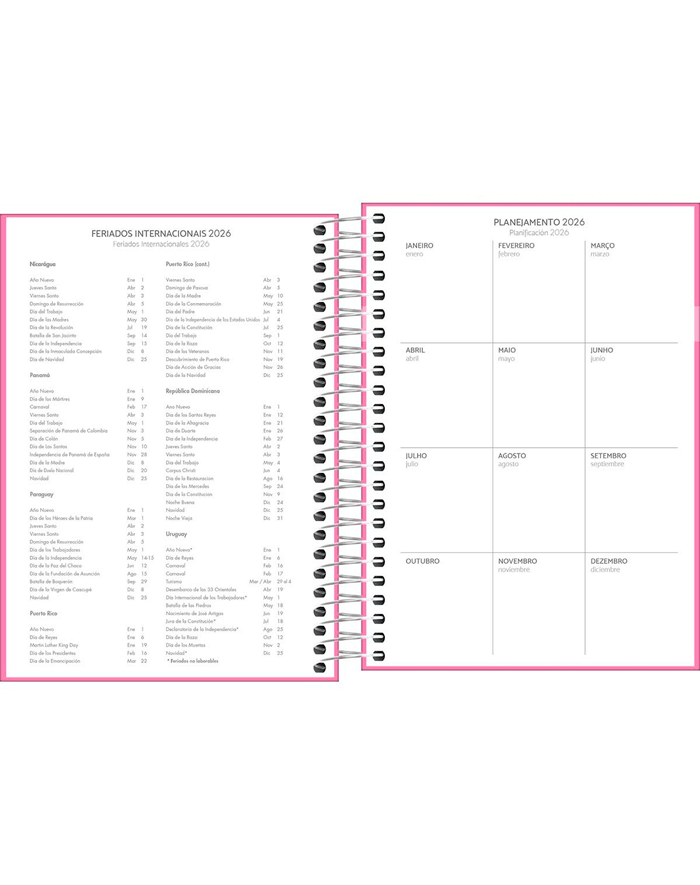 A agenda 2026 conta com 176 folhas com visualização diária (exceto aos sábados e domingos), ideal para organizar tarefas, compromissos e metas com praticidade e estilo.