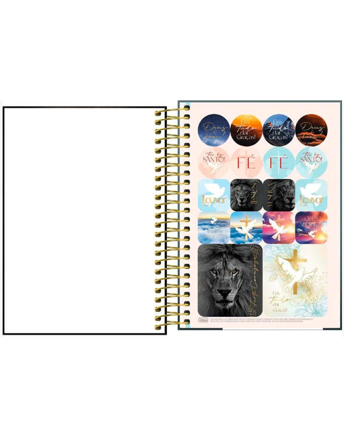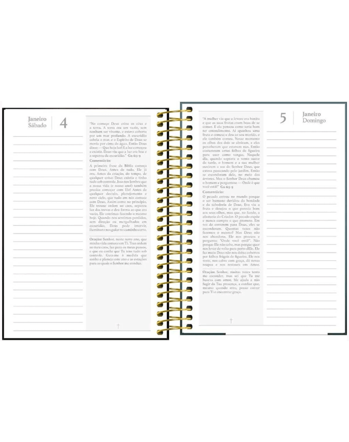 páginas especiais para anotações: intenções; leitura da Bíblia, metas para 2025; Planejamento mensal ( 1 folha com os dias do mês em cada início de mês); objetivos do mês;