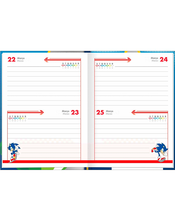 Se você é fã de games e procura uma maneira divertida de manter sua rotina em ordem, a Agenda Costurada Sonic da Tilibra é perfeita para você. Com um design inspirado no icônico personagem dos videogames, ela combina funcionalidade e estilo em um formato compacto de 12,3 x 16,6 cm.