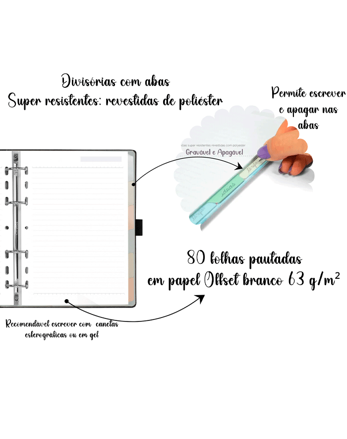 80 folhas pautadas, impressas em papel Offset branco 63 g/m²