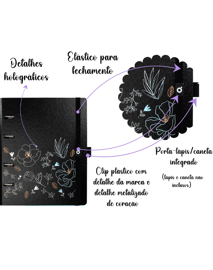 A Coleção Noir combina a sofisticação do preto com a delicadeza das flores, criando um contraste elegante e marcante. Um design moderno que inspira estilo e organização no seu dia a dia.