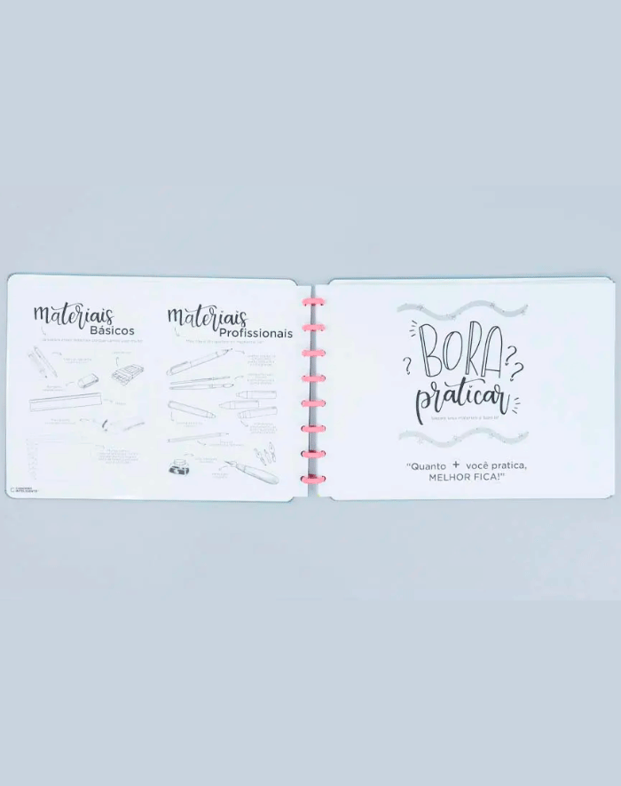 26 páginas de exercícios práticos para você aprender ou aperfeiçoar lettering;