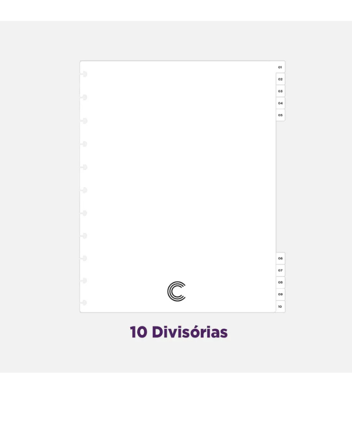 10 divisórias com abas e página de índice