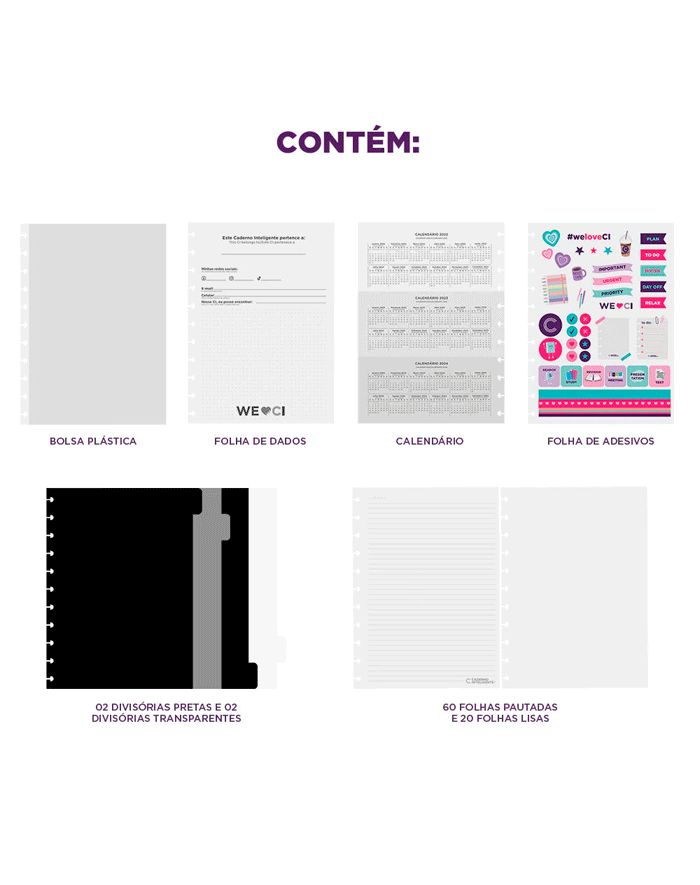 Por ser totalmente customizável permite desde a troca de suas folhas reposicionáveis de alta gramatura e qualidade, de seus discos em tamanhos diferenciados para aumentar ou diminuir a quantidade de folhas e de suas capas e contracapas com estampas exclusivas.
