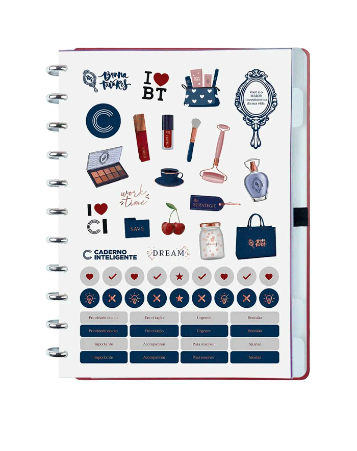Por ser totalmente customizável permite desde a troca de suas folhas reposicionáveis de alta gramatura e qualidade, de seus discos em tamanhos diferenciados para aumentar ou diminuir a quantidade de folhas e de suas capas e contracapas com estampas exclusivas.