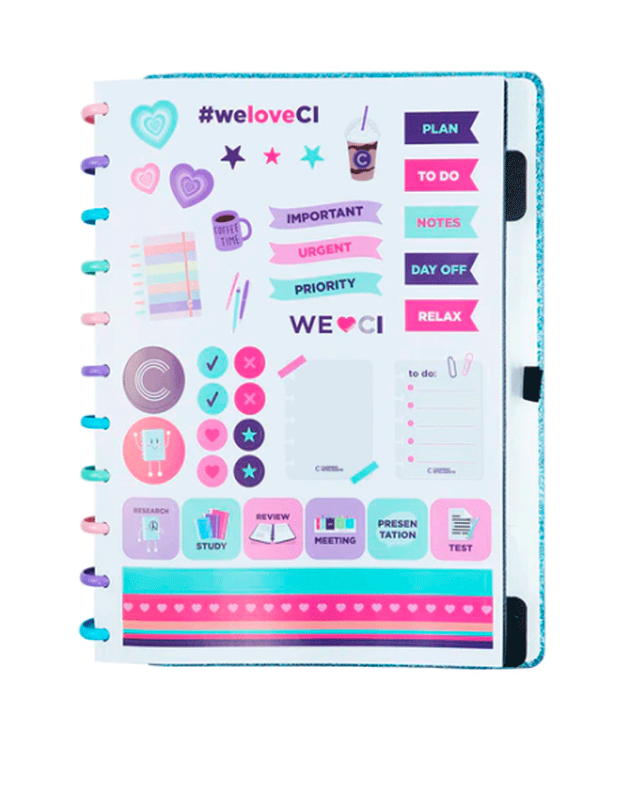 CADERNO INTELIGENTE MEDIO LETS GLITTER OCEAN BLUE 80FLS