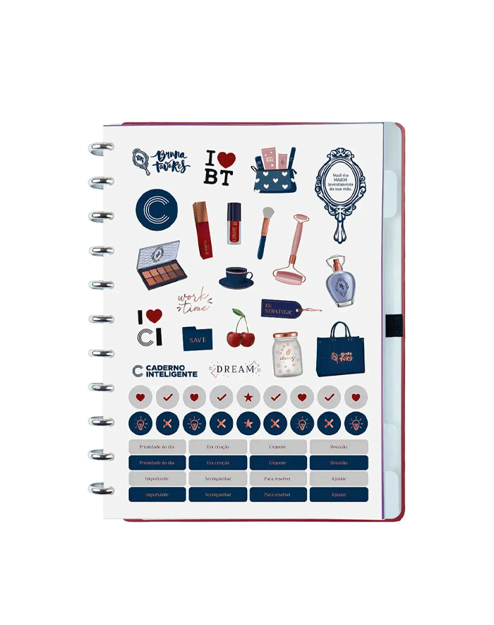 Por ser totalmente customizável permite desde a troca de suas folhas reposicionáveis de alta gramatura e qualidade, de seus discos em tamanhos diferenciados para aumentar ou diminuir a quantidade de folhas e de suas capas e contracapas com estampas exclusivas.