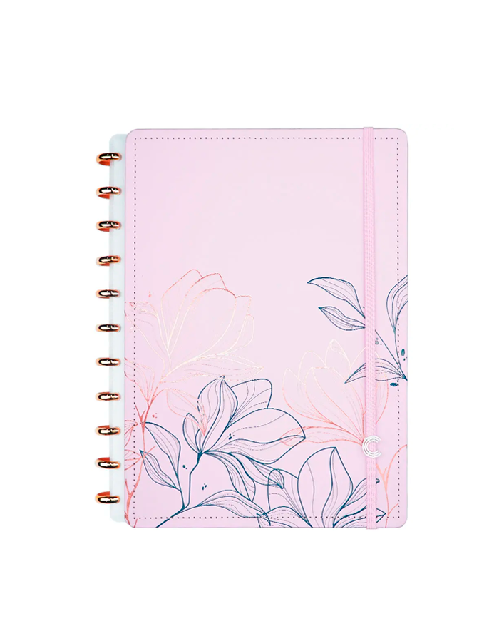 Por ser totalmente customizável permite desde a troca de suas folhas reposicionáveis de alta gramatura e qualidade, de seus discos em tamanhos diferenciados para aumentar ou diminuir a quantidade de folhas e de suas capas e contracapas com estampas exclusivas.