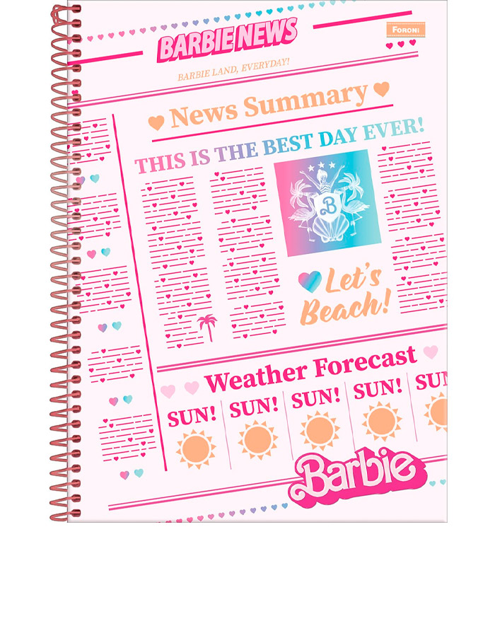 O Caderno Universitário 1 Matéria capa dura Barbie 80 folhas Foroni é ideal para o dia a dia na escola, trabalho ou faculdade. Possui capa em acabamento fosco e detalhes metalizados.