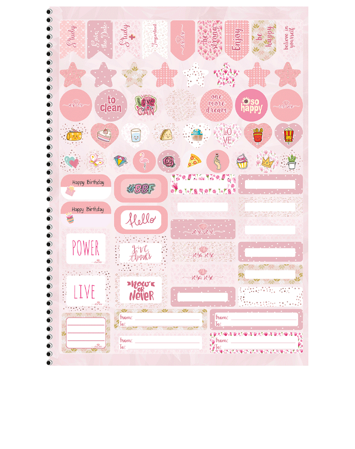 80 folhas pautadas decoradas de gramatura 56 g/m²