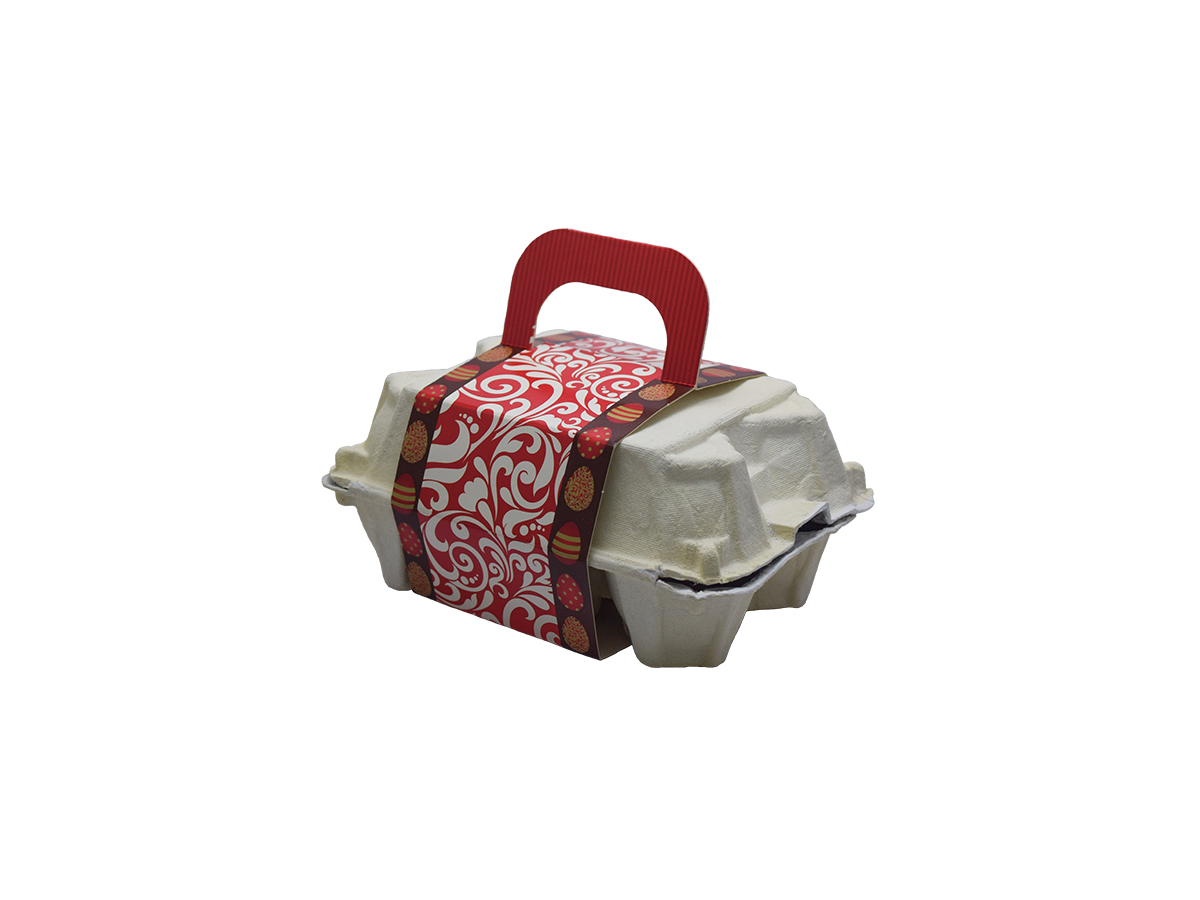 Caixa para seis ovos de até 50g cada.
