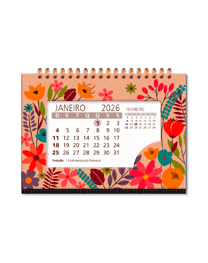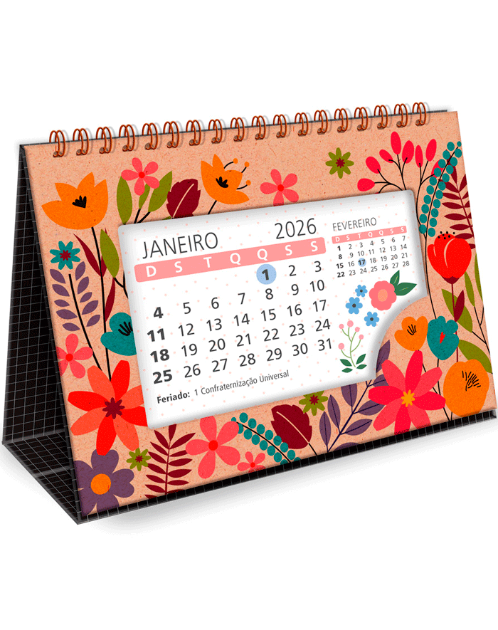 Beleza o ano inteiro com o calendário de mesa Floral Kraft, que também vira porta-retrato! Funcional, decorativo e cheio de charme.