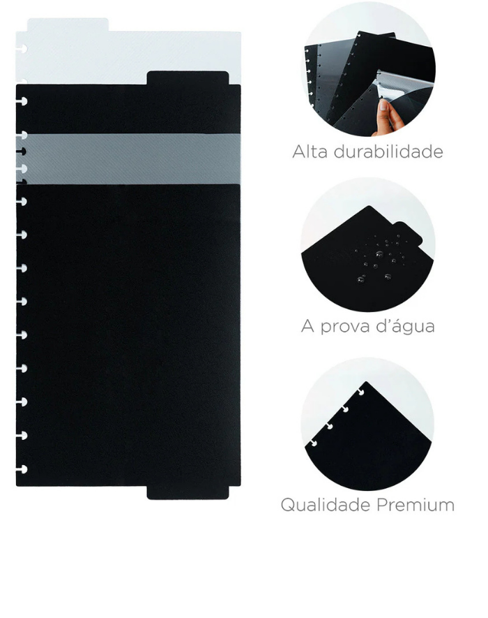 Produzidas com material resistente e de alta qualidade, as divisórias combinam durabilidade com um visual moderno, trazendo mais estilo para o seu caderno.