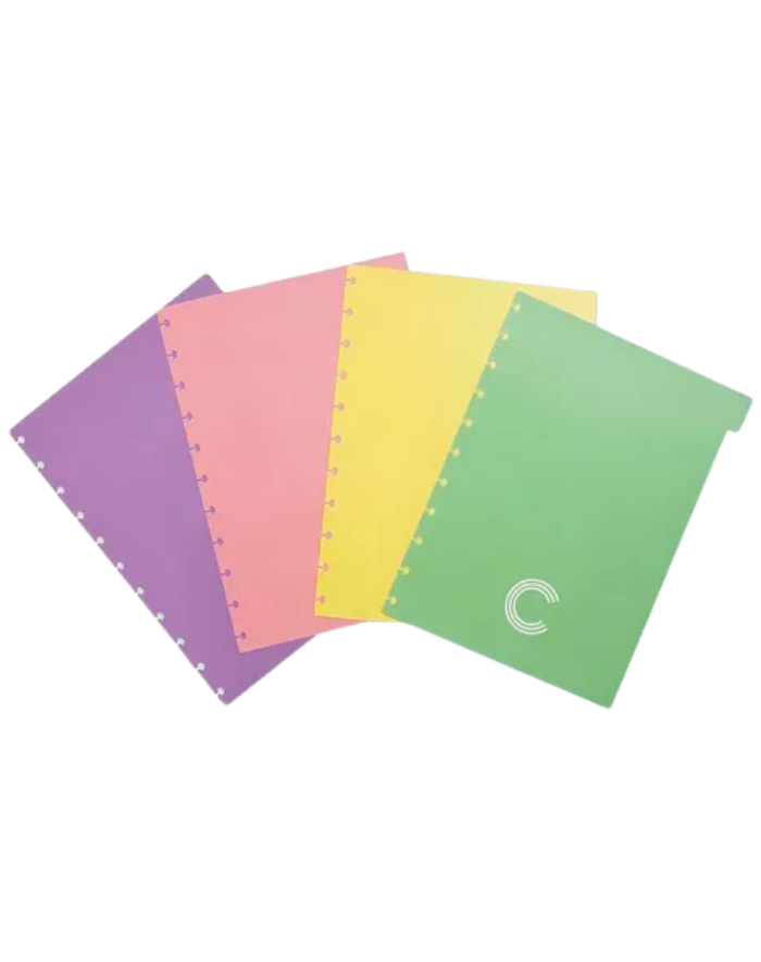Contém 4 divisórias pastel para caderno inteligente pequeno A 5