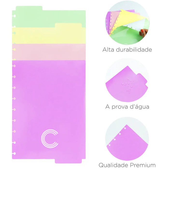 Produzidas com material resistente e de alta qualidade, as divisórias combinam durabilidade com um visual moderno, trazendo mais estilo para o seu caderno.