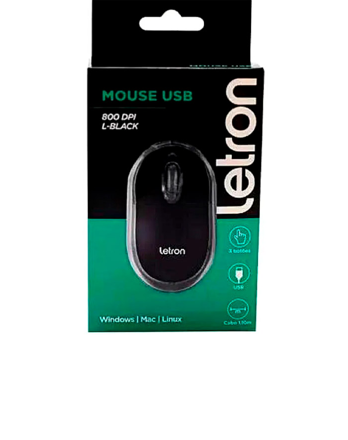 INF.MOUSE USB C/FIO LETRON 800 DPI L-BLACK REF 74300 - LEO