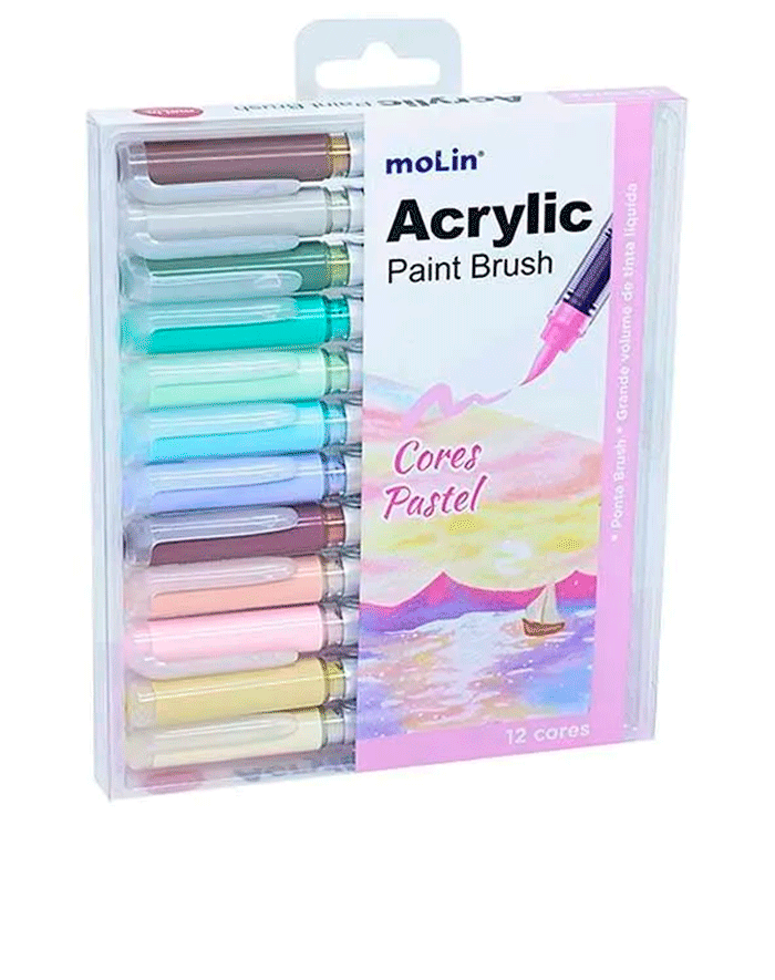 MARCADOR ACRYLIC MOLIN BRUSH ESTOJO C/12 CORES PASTEL