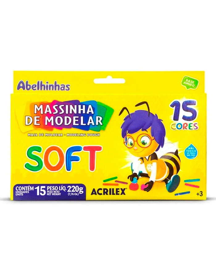 MASSA DE MODELAR C/15 CORES SOFT - ACRILEX