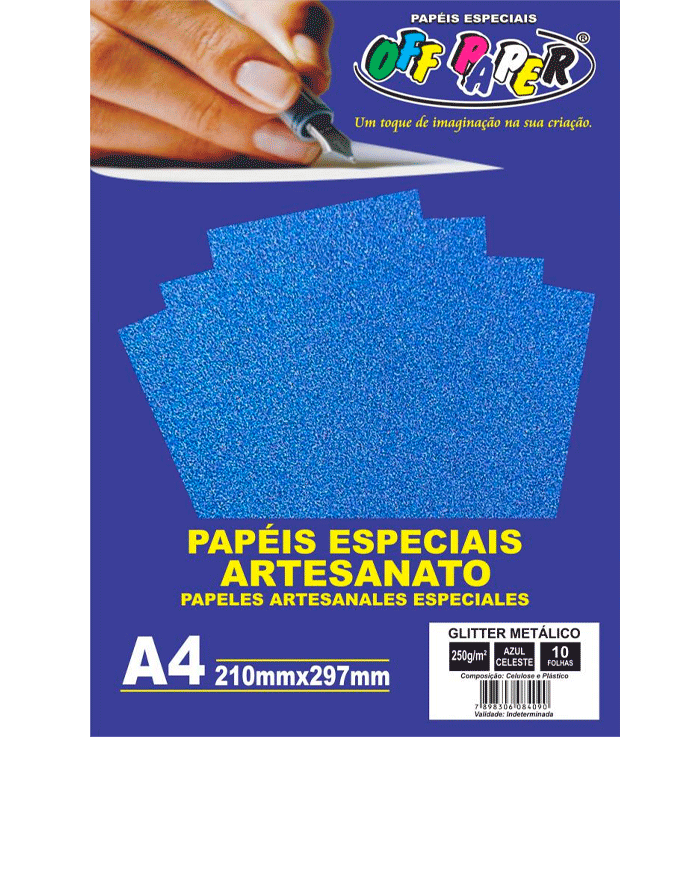 PAPEL C/GLITTER METALICO A-4 250GR AZUL CELESTE 10FL-OFF PAP