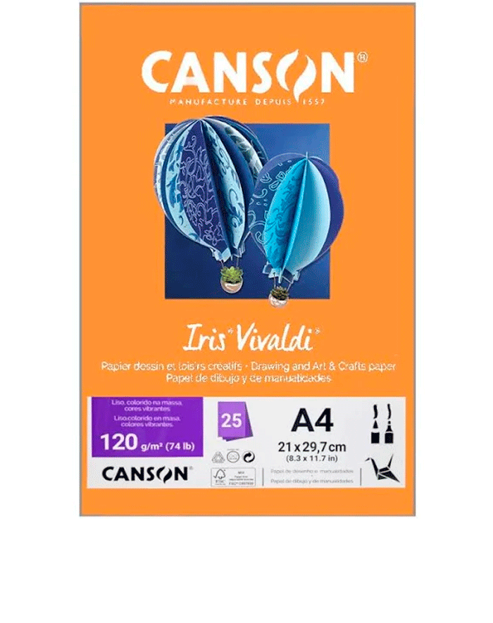 PAPEL CANSON IRIS VIVALDI A4 120GR C/25FLS CENOURA