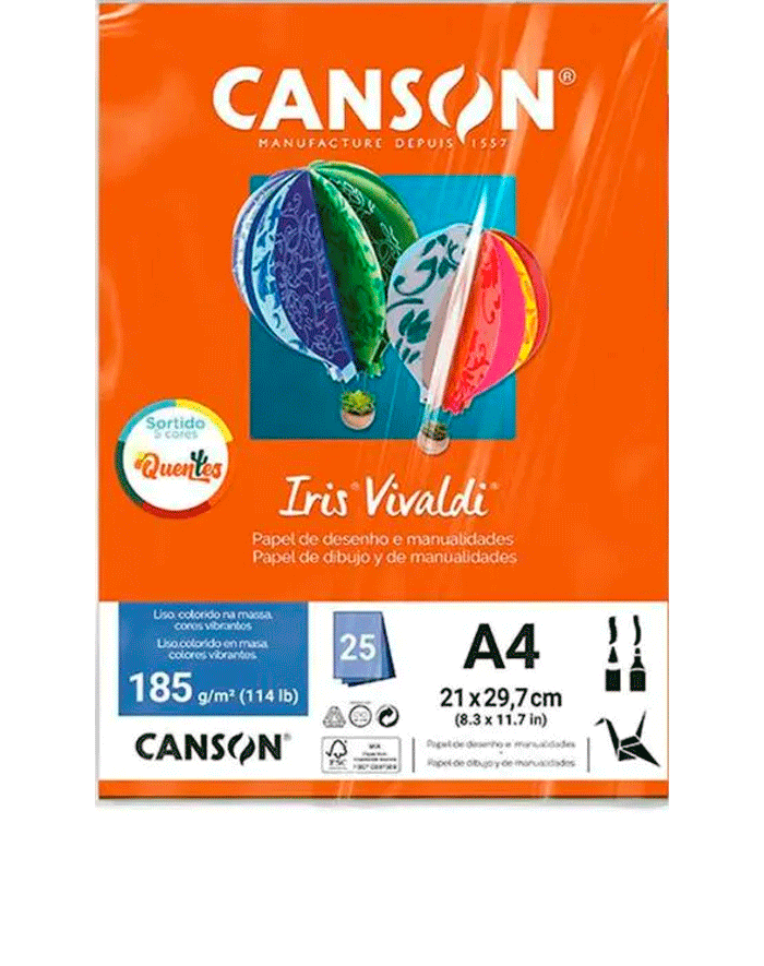 PAPEL CANSON IRIS VIVALDI A4 185GR C/25FLS CENOURA