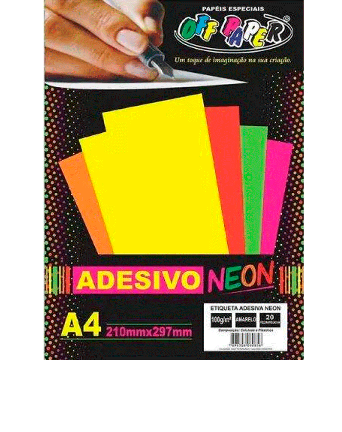 PAPEL NEON ADESIVO A-4 100GR AMARELO 20FLS - OFF PAPER