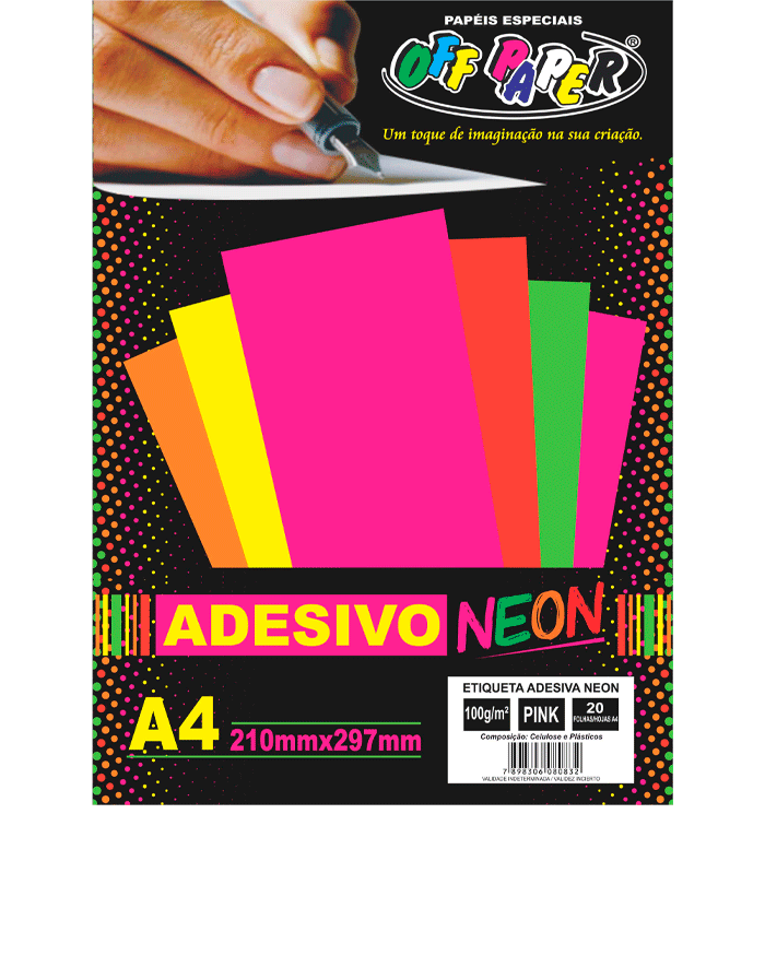PAPEL NEON ADESIVO A-4 100GR PINK 20FLS - OFF PAPER