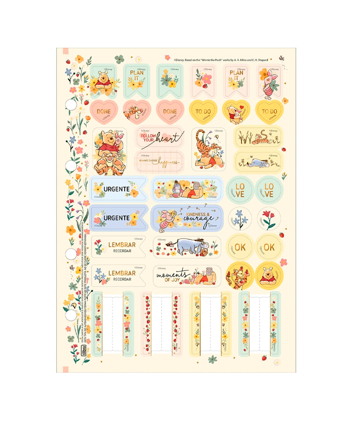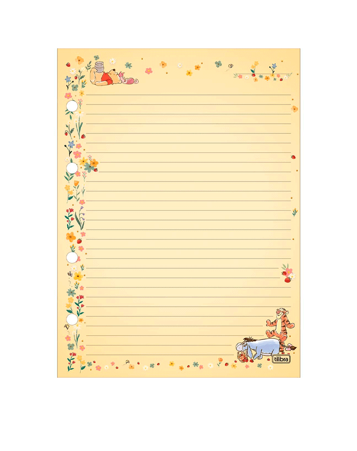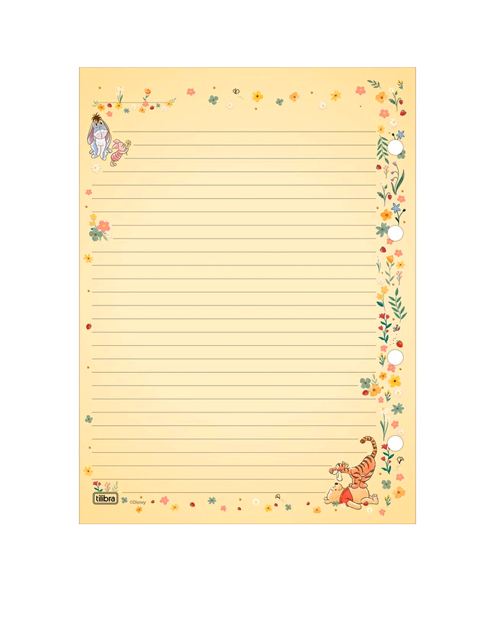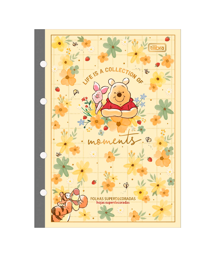 O Refil caderno Argolado Colegial Pooh Pautado 80 folhas Tilibra é ideal para o dia a dia na escola, trabalho ou faculdade. Possui 80 folhas pautadas decoradas de gramatura 63g/m², folha de adesivos funcionais.