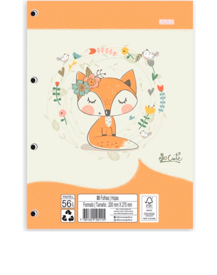 O Refil caderno Argolado Universitário So Cute Pautado 80 folhas São Domingos é ideal para o dia a dia na escola, trabalho ou faculdade. Possui 80 folhas pautadas decoradas de gramatura 56g/m².
