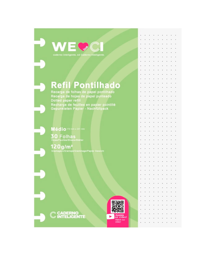 REFIL CADERNO INTELIGENTE MEDIO PONTILHADO 30FLS 120G