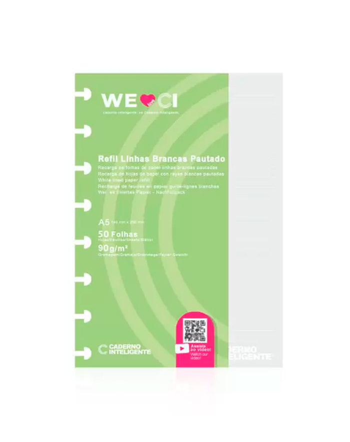 REFIL CADERNO INTELIGENTE PEQ A-5 PAUTAS BRANCAS 50F 90G